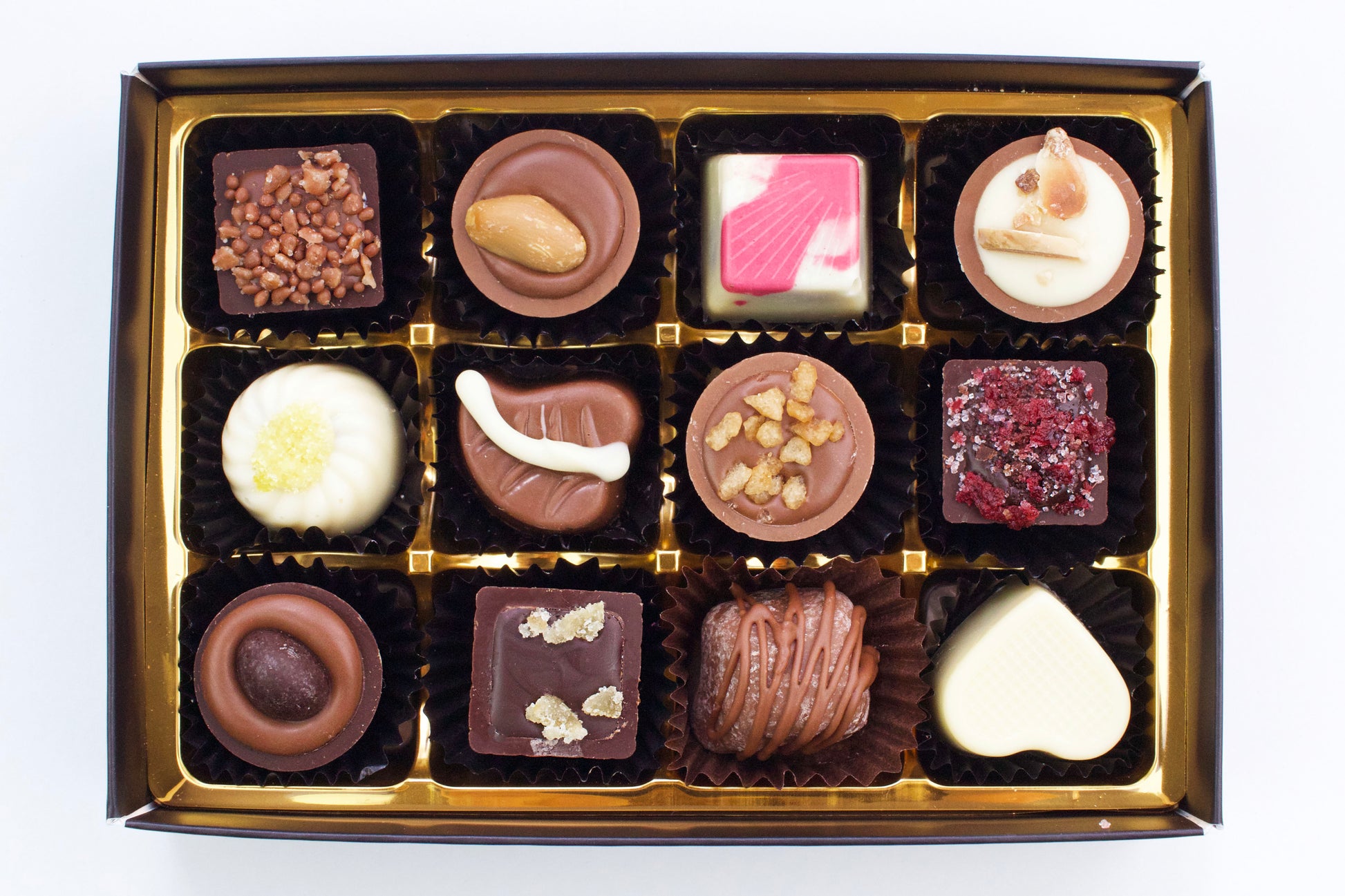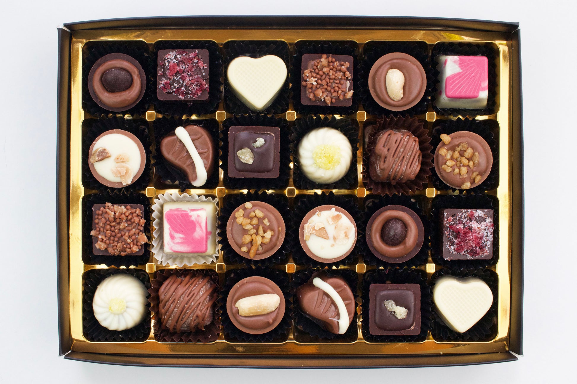 - Delicious caramel, nut butter, and soft centre fruit, filled chocolates.