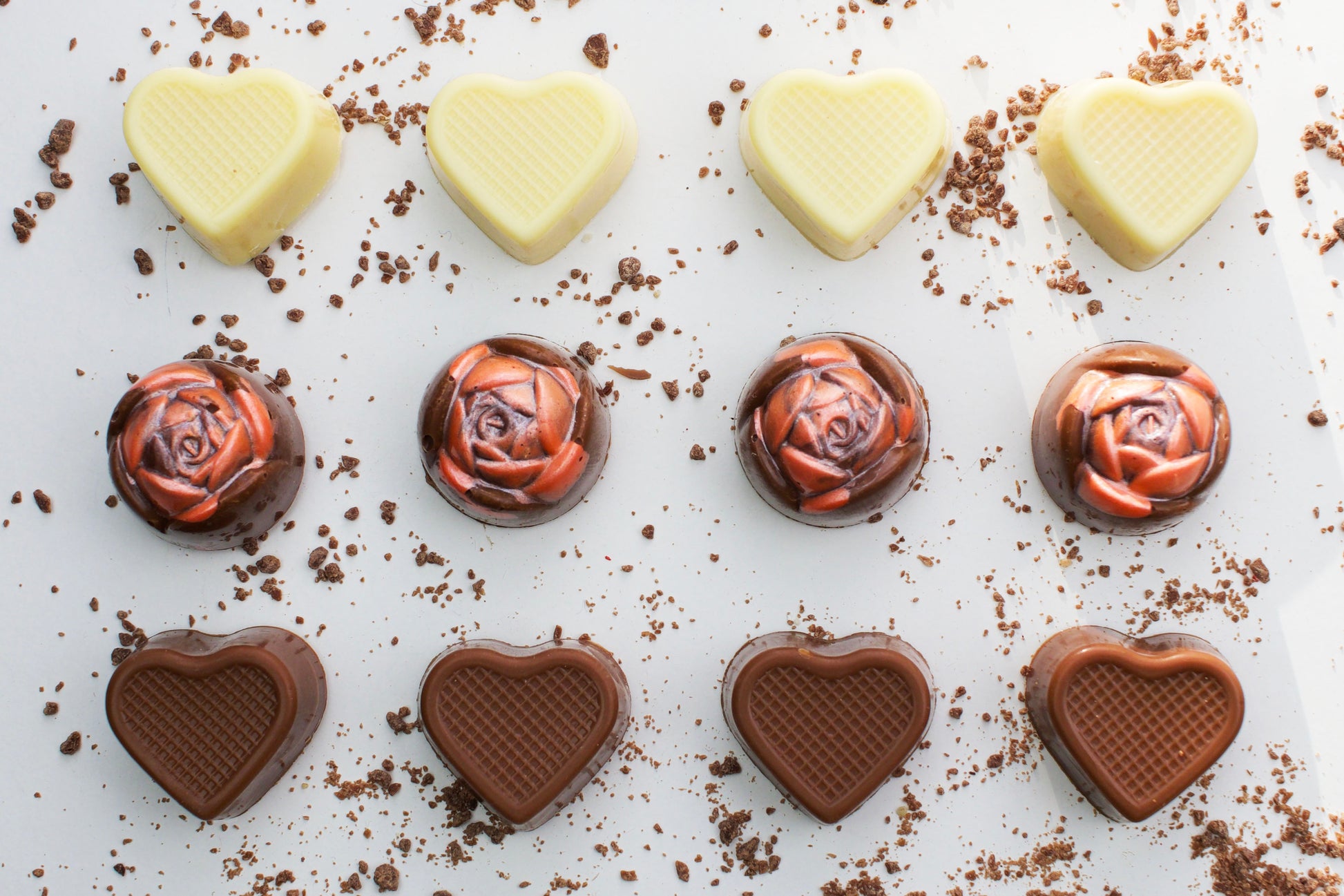 - A collection of delicious unique recipe white and milk valentines themed chocolates, offered in two box sizes. Flavours: champagne, salted caramel, passionfruit.